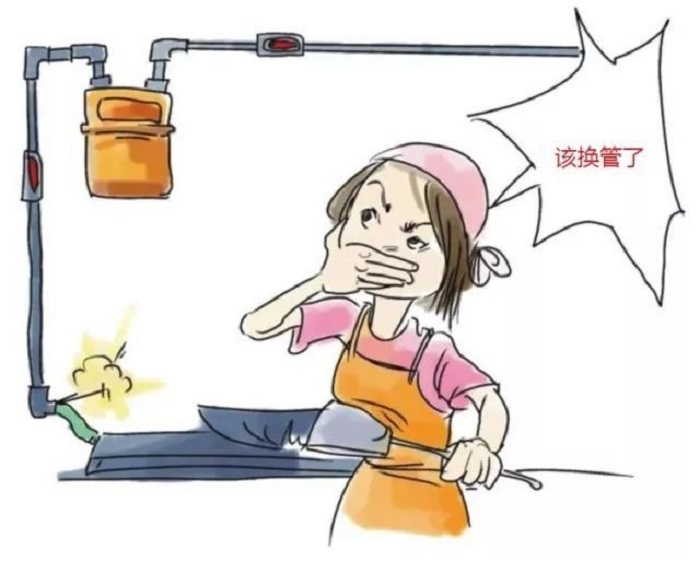 4、用户要定期检查连接燃气具的胶管是否脱落、老化、漏气、磨损,发现问题应及时联系燃气公司进行更换。