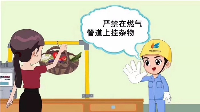 5、不在燃气管道上缠绕电线或悬挂物品,避免漏电伤人或管道损伤、断裂漏气;不可包裹燃气管道和设备,避免漏气时燃气聚积,引发爆炸。