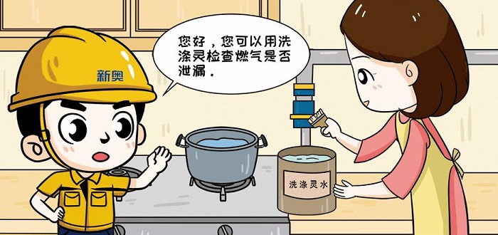 3、用户应定期进行安全自检,可用洗涤剂水涂抹在燃气表、燃气管道、阀门等各连接处检查是否漏气,如有气泡证明有漏气现象,需尽快报修。