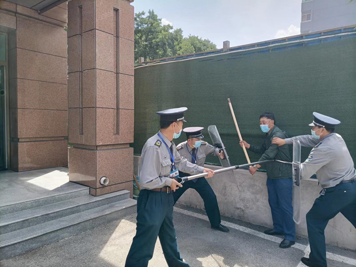 为了达到训练效果,保卫二科制定了详细的训练计划。培训前,科室负责人薛南峰进行了开训动员,详细讲解了警棍盾牌操的动作要领及注意事项,逐一对警棍盾牌的基本打击动作、综合套路进行了演示讲解。培训中,按照警棍盾牌技能训练基本动作和套路要求,对警棍盾牌术的基础动作、组合技能进行了反复练习,通过逐人示范,逐人纠正,分组练习,集中合练、总结讲评等方式,使安保队员快速掌握了警棍盾牌术动作要领。培训期间还组织开展了执勤礼仪训练和校区安全防范育。