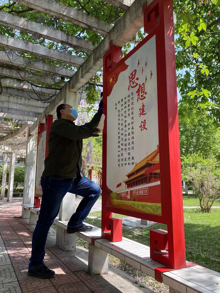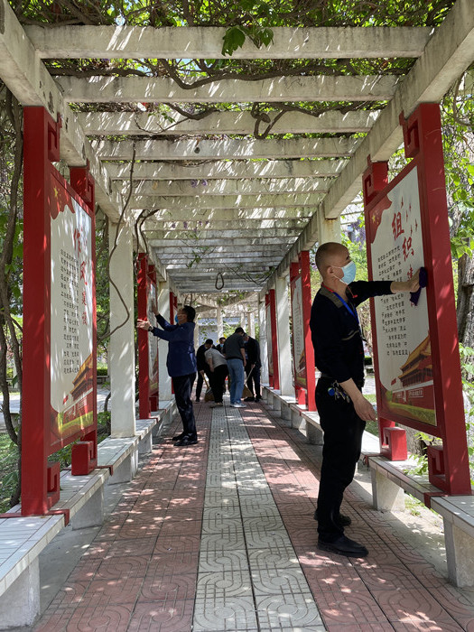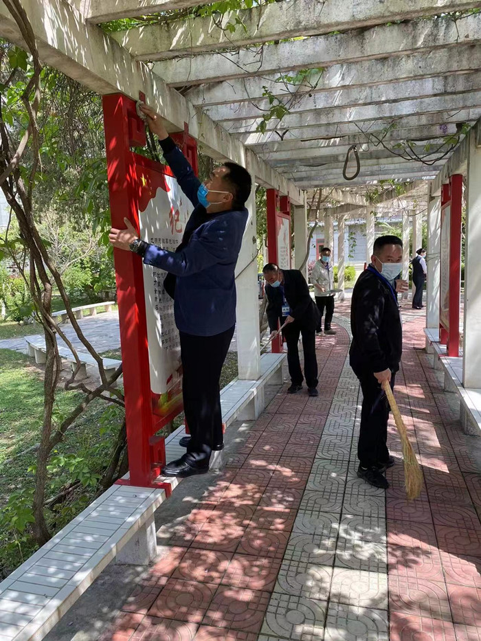 活动中,全体党员充分发挥不怕脏、不怕苦、不怕累的精神,纷纷拿起扫帚、铁锹、抹布等劳动工具,对校园文化长廊、支部区域卫生进行了集中清扫,党员们有的清理杂草、有的捡拾垃圾、有的擦洗长廊宣传标语,认真细致、干劲十足,以实际行动彰显了共产党员风范。经过近一小时的分工协作、有序清理,区域环境焕然一新。