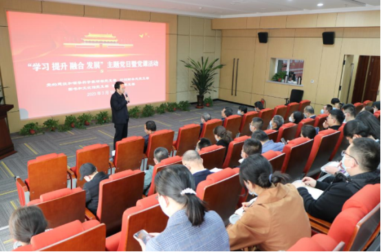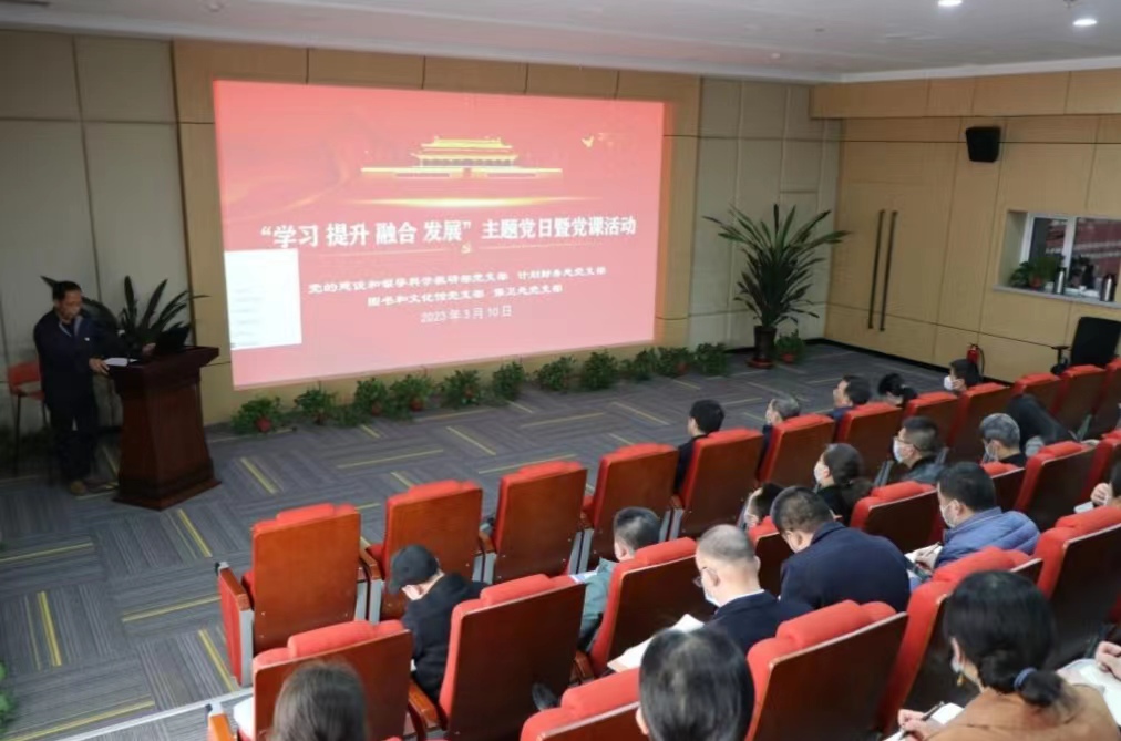 活动中,党的建设和领导科学教研部党支部书记高璐佳以《中国共产党第二十届中央委员会第二次全体会议精神解读》为题,围绕党的二十大对党的建设作出的战略部署,从“推进全面从严治党”“发扬党的自我革命精神”“解决大党独有难题”“弘扬伟大建党精神”等方面,为全体党员讲了一堂精炼又生动的党课。本着“互学互鉴同提升,深度融合促发展”的目的,图书和文化馆党支部书记鲜鹏分享了支部标准化建设的好经验好做法;保卫处党支部书记王建强介绍了本部门维护校(院)安全稳定、全力助推“平安校园”建设的服务保障职能;计划财务处党支部二级调研员邵凌云就教研人员关注的科研经费报销制度及流程等内容作了详细说明。