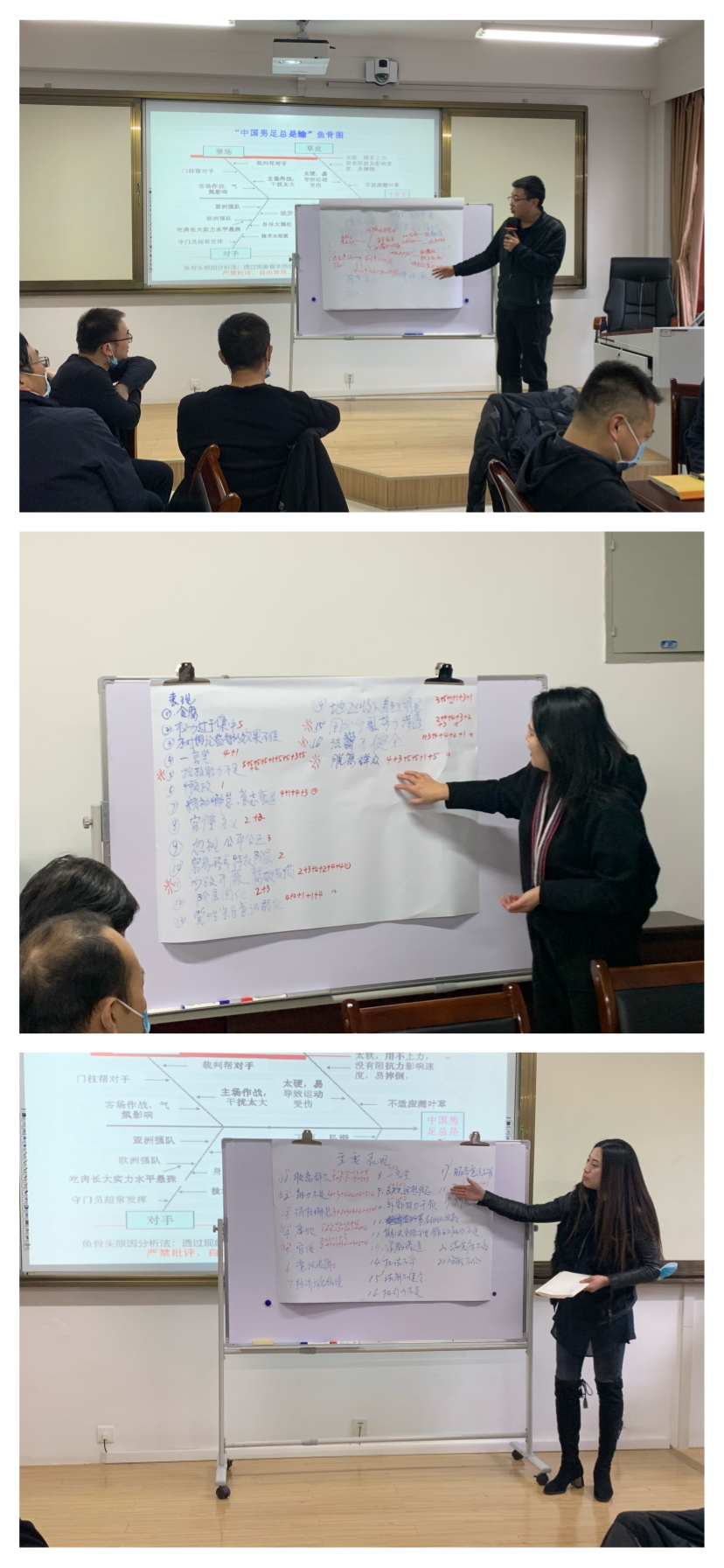 此次结构化研讨将学员分成四个小组,共有两个阶段组成。第一阶段是聚焦问题,即各小组学员采取团队列名法,就“党执政面临的风险和挑战”依次交流发言;各位学员积极参与、各抒己见,最后聚焦出研讨的4至5个问题。第二阶段是分析原因并提出对策,即各小组学员从大局和长远角度出发,采取头脑风暴法、“鱼骨图法”系统整理出原因的主次方面,在此基础上提出对策建议。之后通过整理归纳,形成发言提纲,由小组发言人介绍研讨成果。