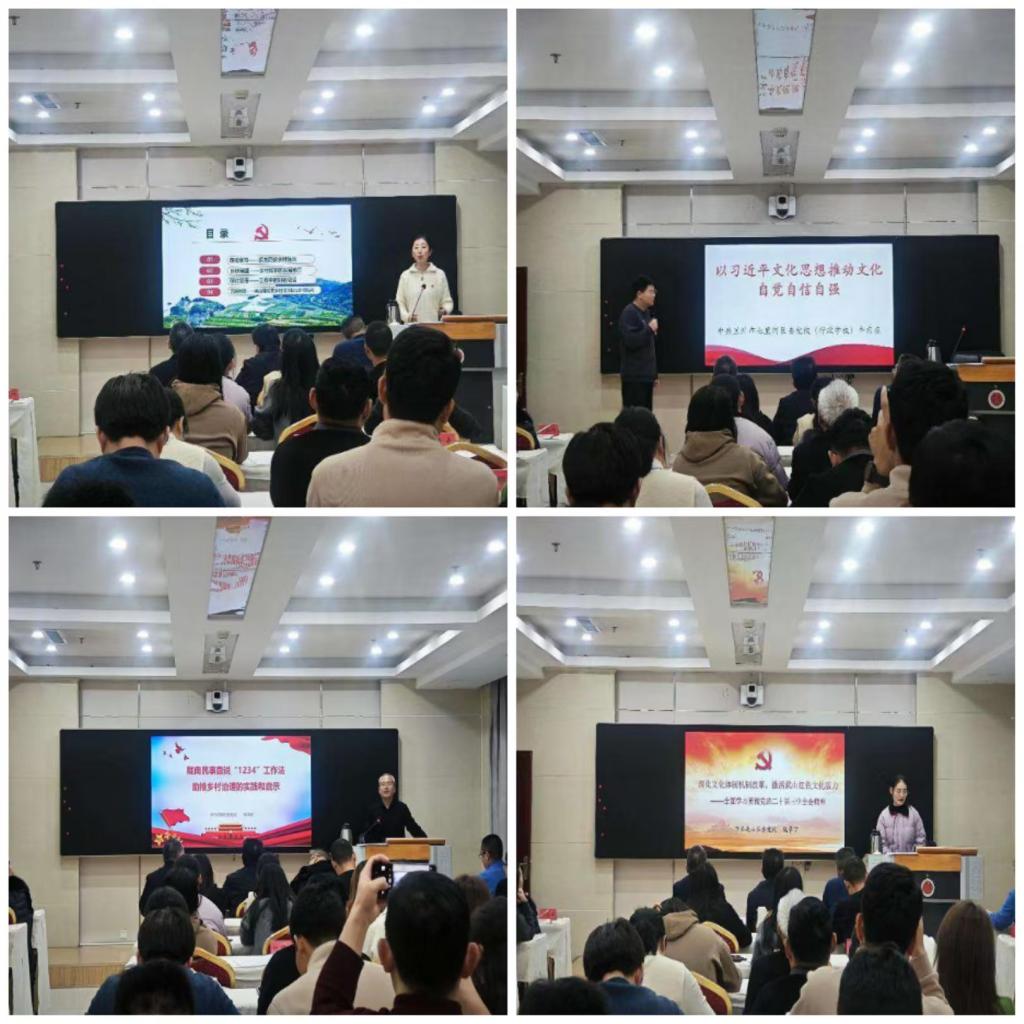本次说课活动采取“讲评结合、以评促讲”的模式,共有4位学员代表分别围绕习近平文化思想、党建引领助推乡村振兴、文旅融合发展、传承发扬红色文化等主题对课程的逻辑框架、内容安排以及重点、亮点部分进行讲解展示,充分展现了党校教师过硬的政治素质、认真的备课态度与扎实的专业素养。