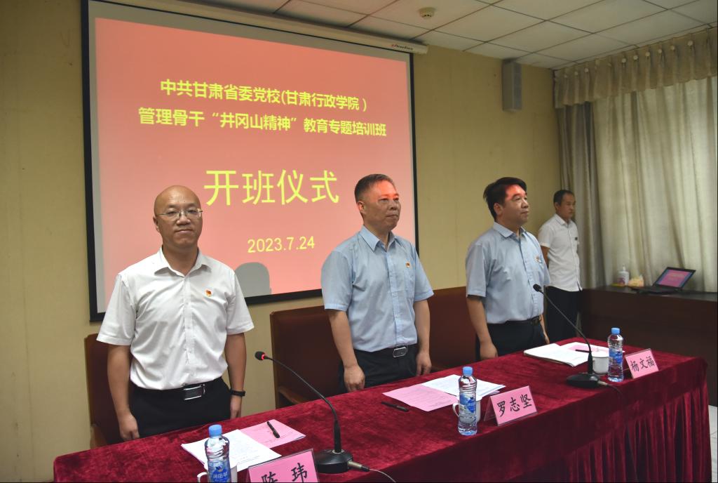 (通讯员 柳清元)7月24日下午,甘肃省委党校(甘肃行政学院)管理骨干“井冈山精神”教育专题培训班在江西省委党校(江西行政学院)开班。在开班式上,江西省委党校(江西行政学院)一级巡视员罗志坚同志致欢迎辞,甘肃省委党校(甘肃行政学院)副校(院)长杨文福作培训动员讲话,江西省委党校(江西行政学院)干部教育学院副院长陈玮主持开班式。
