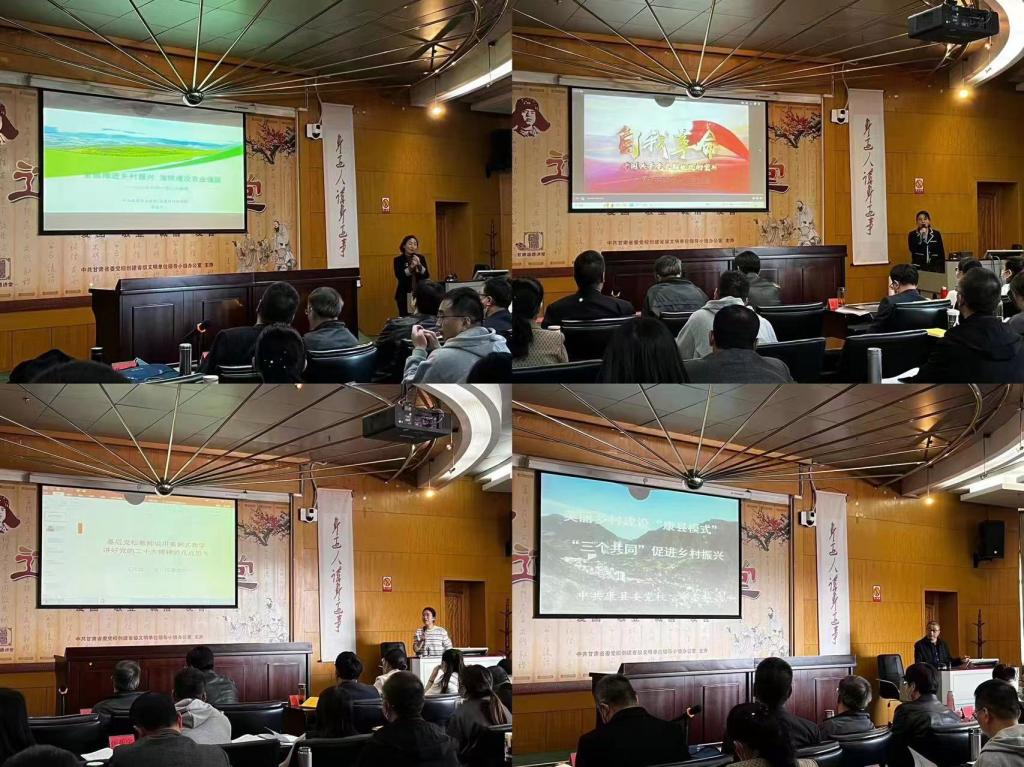 学员以组为单位派选四位代表分别做课程展示。来自康县委党校邱志奎教师以《美丽乡村建设——康县模式,三个共同——促进乡村振兴》为题进行课程展示;来自高台干部学院夏丽娜教师以《自我革命——中国共产党长期执政的密码》为题进行课程展示;来自金川区委党校王红霞教师以《基层党校教师运用案例式教学,讲好党的二十大精神的几点思考》为题进行课程展示;来自临夏州委党校祁金芳教师以《全面推进乡村振兴,加快建设农业强国——2023年中央一号文件解读》为题进行课程展示。