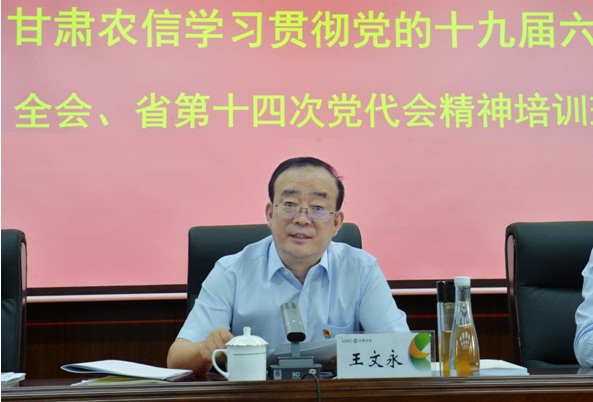 (通讯员 杨波)6月18日上午,甘肃省农村信用社联合社学习贯彻十九届六中全会、省第十四次党代会精神培训班在安宁校区顺利开班。省农信联社党委书记、理事长王文永出席并作动员讲话,校(院)一级巡视员王伟教授出席并致辞。会议由王文永主持。