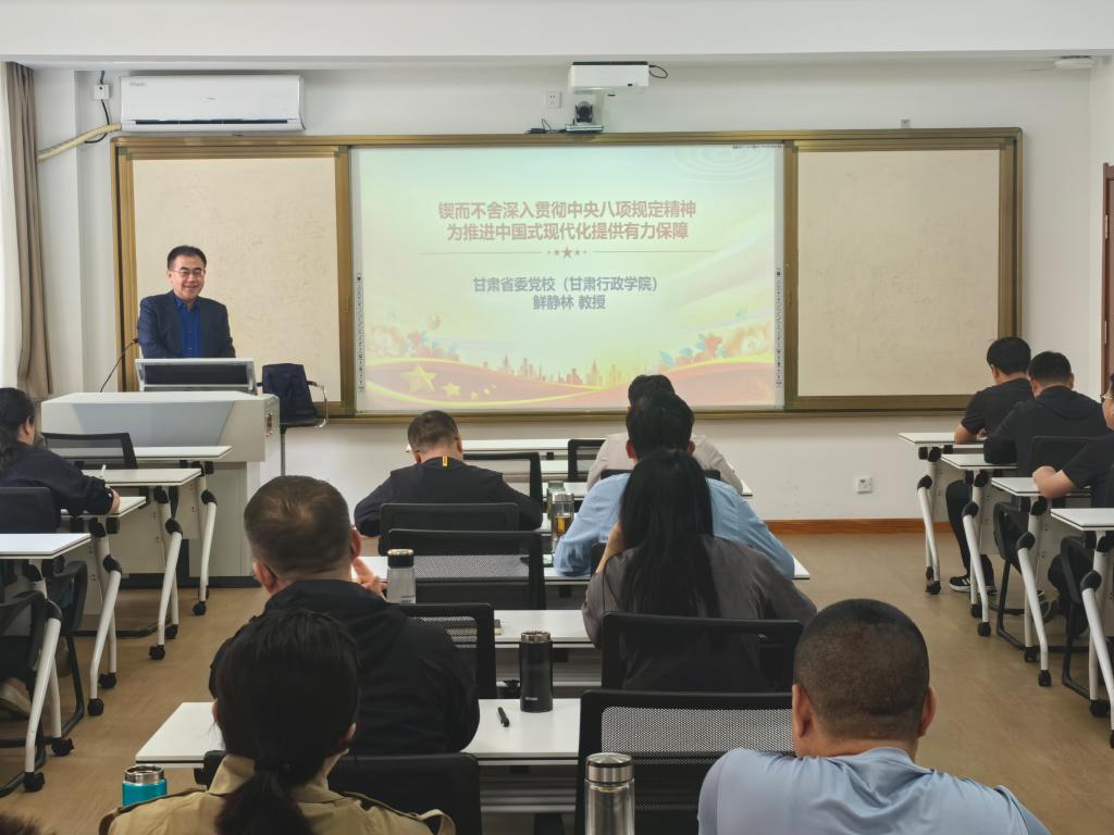 (通讯员 陈斌斌)为深入学习贯彻中央八项规定精神,持续抓好作风建设,4月19日下午、20日下午公共管理教研部党支部书记、行政管理专业导师组组长鲜静林教授分别在2024级行政管理专业五班、六班和七班党性教育课上为全体学员作了主题为“锲而不舍深入贯彻中央八项规定精神 为推进中国式现代化提供有力保障”的专题辅导。此轮专题辅导,是公共管理教研部党支部推动中央八项规定精神学习教育与研究生教育深度融合的创新实践,更是将支部党课延伸至研究生党性教育全过程的有益探索。