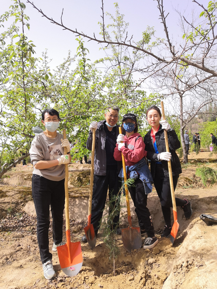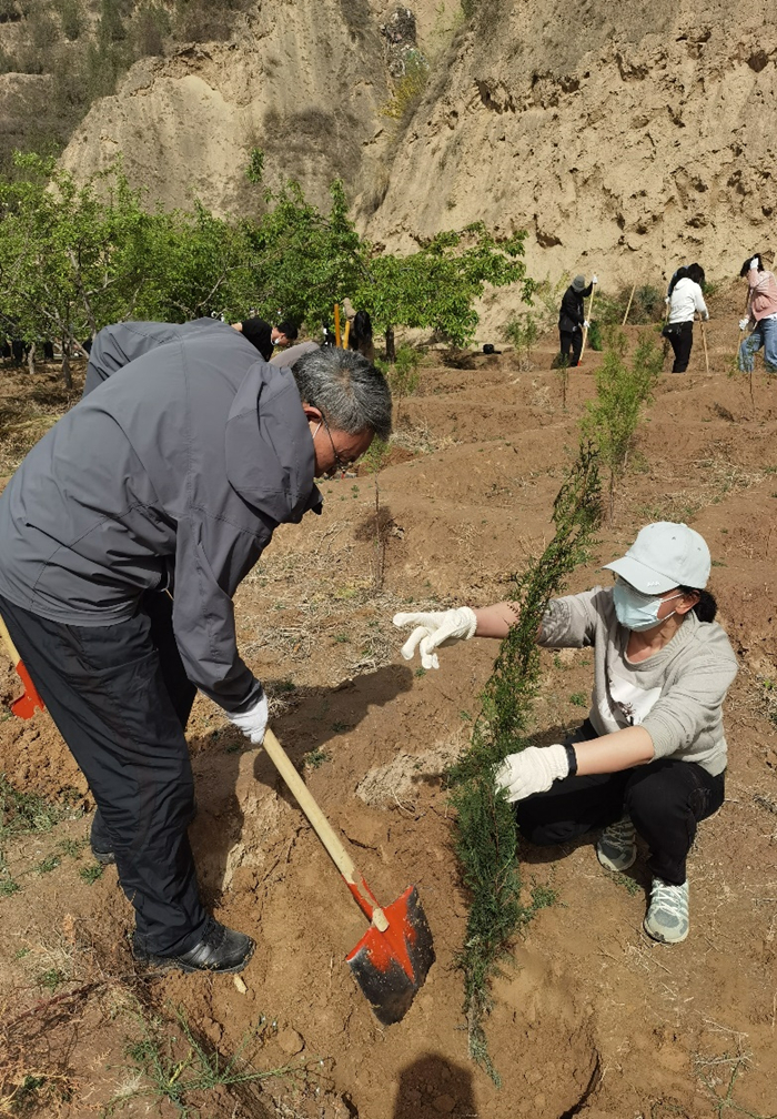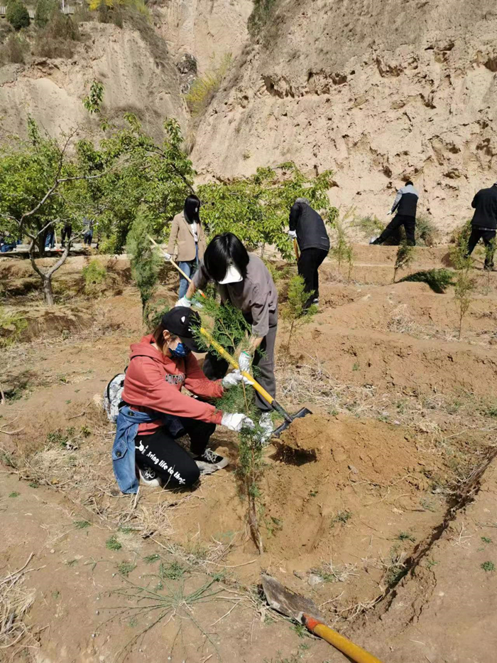 (通讯员 张建晖)4月28日,春风送暖、阳光明媚,教研部魏奋子、陈娟、张建晖、王菲老师与校(院)其他部门教职员工一起来到北山九州台绿化基地参加义务植树活动。老师们在园林科技术人员指导下,分工合作,挖坑、培土、围堰、浇水,在体会集体劳动快乐的同时,也感受了为建设美丽家园、给陇原增绿的自豪。