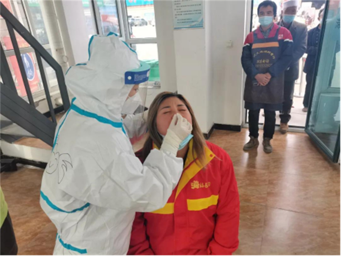 平凉疾控中心秦郡霞同学正在给群众做核酸检测