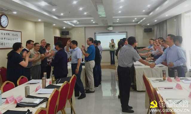 首先,主持人结合干部培训及成人学习的原理,介绍了破冰训练的含义、目的和教学意义;随后带领学员们开始六一儿童节特别版的破冰活动。以“找朋友”的游戏开场,学员和老师们一同欢唱着“找朋友”,通过彼此的微笑、敬礼、握手,快速消除了学员间的陌生感,拉近了学员间的距离;第二个环节“左右配合”,主持人带领学员进行了左右手配合的游戏,以达到手脑配合、集中注意力的目的;第三个环节“建立团队”,通过自我介绍、选出组长、确定组名、编写组训等形式,使学员间彼此熟悉,组员间凝练智慧、协同配合,形成了各具特色的学习型团队;第四个环节“介绍组员”,随机让学员介绍一位本组队友,介绍正确有奖励,介绍错误要“惩罚”的方式,强化了学员之间的深入了解,进一步加深了彼此的认知度,破冰训练在欢乐的氛围中圆满结束。通过本次破冰训练,学员转换角色,熟悉彼此、融洽感情,激发兴趣、启发心智,增强互动、促进合作,为尽快进入良好学习状态做好了准备。这次破冰训练创意独特、准备充分,完全达到了预期目的,同时也锻炼了教学团队,积累了破冰训练的经验。