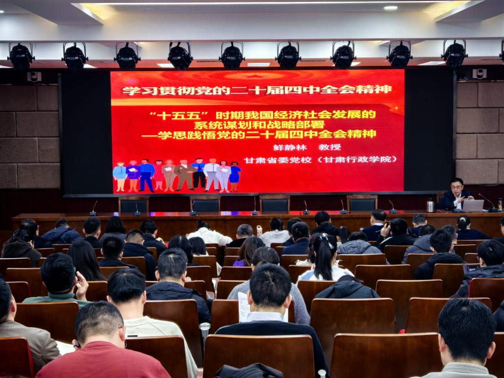 鲜静林教授以“‘十五五’时期我国经济社会发展的系统谋划和战略部署——学思践悟党的二十届四中全会精神”为题,从党的二十届四中全会的基本情况、主要成果和重大意义、特点,习近平总书记在全会上就《建议(讨论稿)》向全会作的说明中关于几个重点问题的重要论述,完整准确全面理解领悟《建议》提出的战略部署,全力以赴抓好全会精神贯彻落实四个方面,对二十届四中全会精神进行了全面的梳理和系统的解度。鲜静林教授希望大家要在“学思践悟”二十届四中全会精神的基础上,通过提高政治站位、树立历史眼光、强化理论思维、增强大局观念、丰富知识素养、坚持目标导向和问题导向,紧紧围绕习近平总书记在全会上的重要讲话和《规划建议》,完整准确全面把握领悟“十四五”时期我国发展取得的重大成就、“十五五”时期经济社会发展的重大意义、党中央关于国内外形势的基本判断和“十五五”时期经济社会发展的指导思想、重大原则、主要目标、战略任务和重大举措、根本保证,从而贯彻落实全会精神要着重把握领悟的重点。