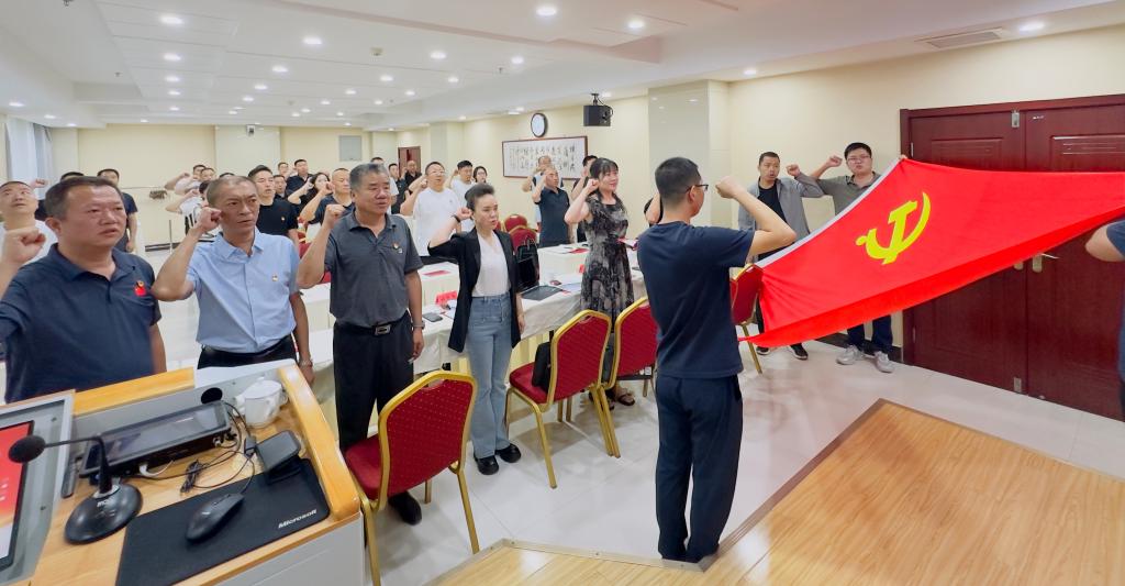 党课结束后,通过重温入党誓词、贺卡寄语、党员代表交流发言等形式,为6月份过“政治生日”的19名党员集体庆祝“政治生日”。