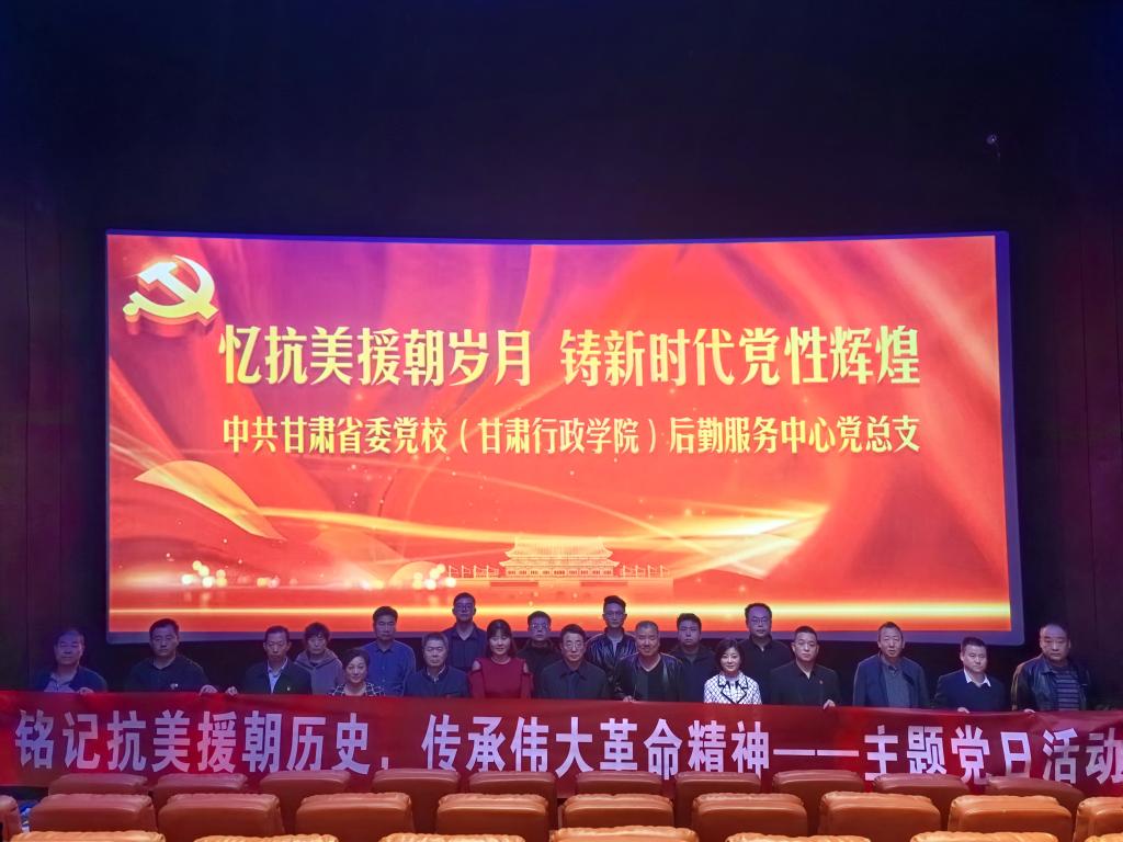 2024年10月25日,中共甘肃省委党校(甘肃行政学院)后勤服务中心(机关服务处)党总支联合甘肃省机关事务管理局房地产管理处党支部和不动产登记工作专班临时党支部、兰州市公安局七里河分局委员会、中共甘肃方舟救援志愿服务队支部委员会,共同参加由兰州中心承办的“忆抗美援朝岁月,铸新时代党性辉煌”主题党日活动,90余名党员参与其中。