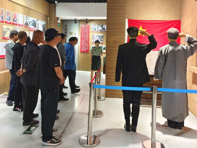 在胡廷珍烈士纪念馆前,全体党员重温了入党誓词。