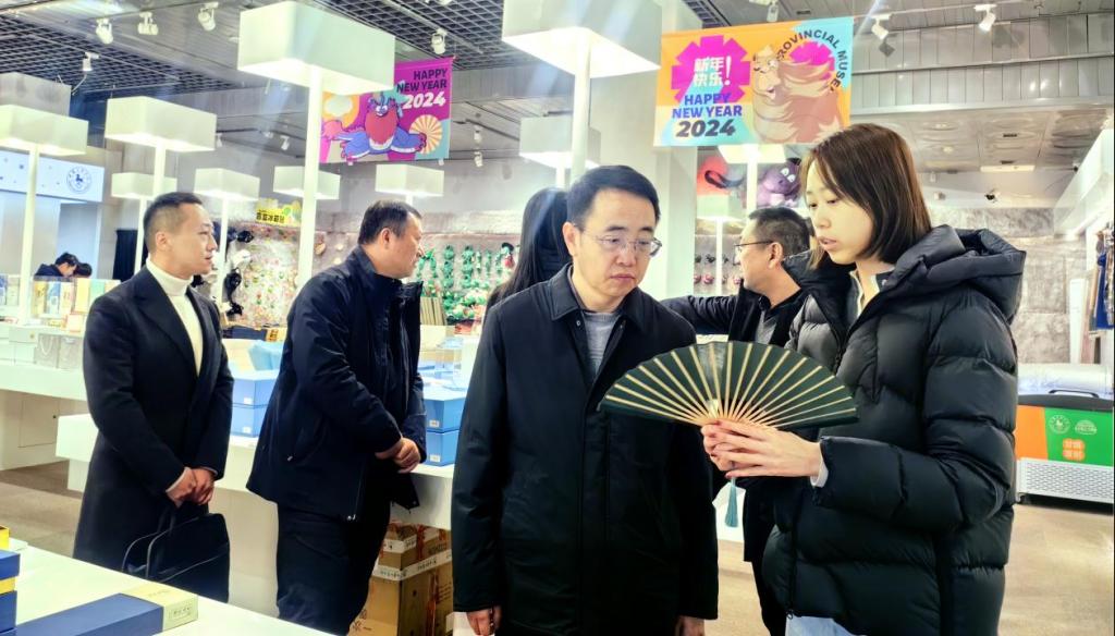 随后,学习研究小组参观了省博物馆文创商店,仔细聆听工作人员介绍文创产品蕴含的设计理念及文化价值,详细了解文创产品的研发、设计、制作及销售等过程。