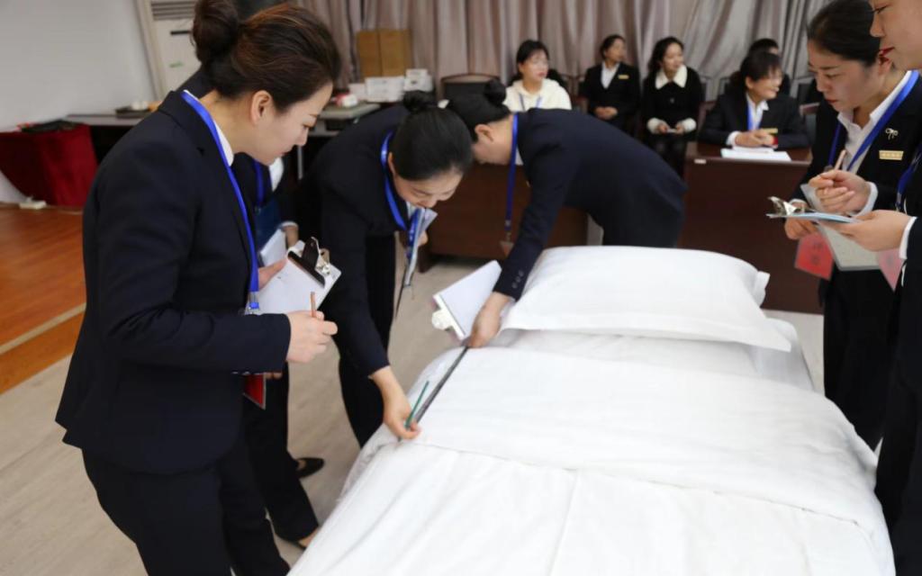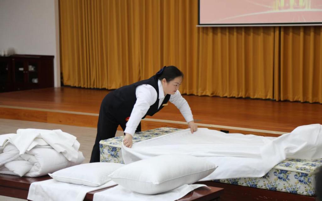 为巩固提升员工的服务水平和业务实际操作能力,进一步增强服务意识,促进员工队伍的整体活力,丰富员工文化生活,树立后勤服务中心良好形象,后勤服务中心(机关服务处)举办了客房、会场服务技能大赛。中心领导班子成员、其他业务科室主要负责同志和相关科室全体聘用员工参加了本次大赛,副校(院)长辛焕新、鲜鹏莅临比赛观摩指导。