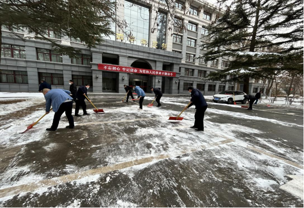 为做好春季开学前的准备工作,减少道路积雪给职工出行带来的不便和安全隐患,2月16日,后勤服务中心(机关服务处)第四党支部组织开展扫雪除冰主题党日活动,确保学员楼前道路安全通畅,为教职工和学员出行保驾护航。