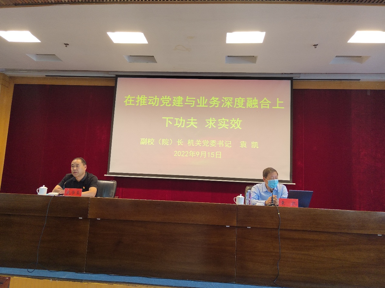 (通讯员:杨晓军)9月15日下午,后勤服务中心(机关服务处)第四党支部全体党员在教学楼202教室参加了副校(院)长、机关党委书记袁凯讲的题为“在推动党建与业务深度融合上下功夫、求实效”专题党课学习活动。