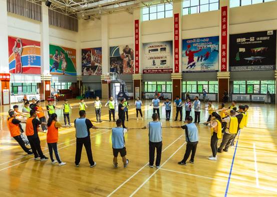 主题党日活动分两步进行,首先,全体党员面对鲜红的党旗,重温入党誓词,进一步增强党员意识;随后,在拓展训练项目教学团队的带领下,开展了拓展训练科目的体验及团建活动,通过教学团队精心设计的能量传递、动力绳圈等项目,每个党员都融到了整个团队里面。