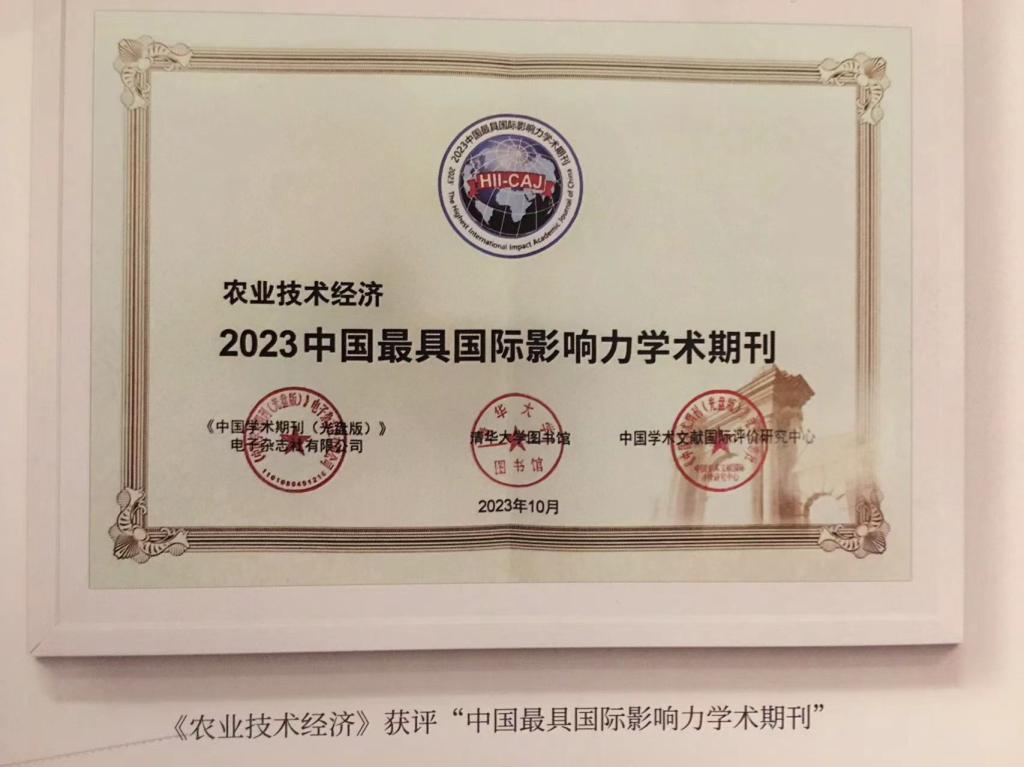 《农业技术经济》杂志由中国农业科学院农业经济与发展研究所和中国农业技术经济学会主办,是目前国内农业技术经济类方面的权威期刊,2023年《农业技术经济》被评选为中国最具国际影响力学术期刊之一。