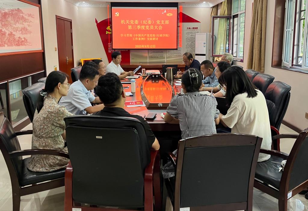 (通讯员 赵 丹)9月12日下午,机关党委(纪委)党支部召开第三季度党员大会,开展学习贯彻《中国共产党党校(行政学院)工作条例》交流研讨。机关党委(纪委)党支部全体党员干部参加。