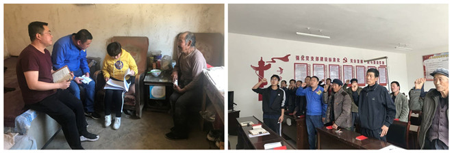 榆河村驻村帮扶工作队队员入户了解贫困户脱贫情况、榆河村党支部组织召开主题党日活动