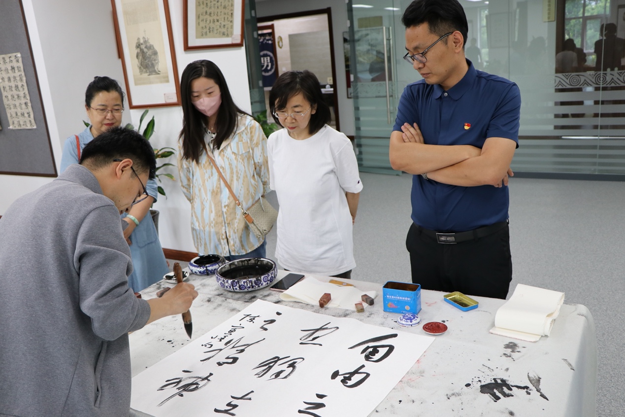 首先双方党支部书记分别介绍部门科室构成、人员组成、优势亮点等基本情况,并结合各自支部工作实际,围绕如何开展日常支部党建活动、如何促进党建与业务融合发展、如何打造支部品牌亮点及如何通过党建提高业务能力等一系列问题展开深入探讨交流。活动中,文史教研部党支部书记王旺祥以《深入学习党的十九届六中全会精神》为题为大家讲授党课,他从深刻认识总结党的百年奋斗重大成就和历史经验的重大意义、深刻认识党的百年奋斗的光辉历程和辉煌成就、深刻认识中国特色社会主义新时代的历史性成就和历史性变革、深刻认识党的百年奋斗的历史意义和历史经验、深刻认识以史为鉴、开创未来的根本要求、深入学习贯彻党的十九届六中全会精神,奋力开创甘肃社会主义现代化建设新局面等六个方面对党的十九届六中全会精神作出了系统全面的讲解,很好地帮助大家进一步深刻领会学习十九届六中全会精神。两支部还开展了书法展示等融合交流活动。
