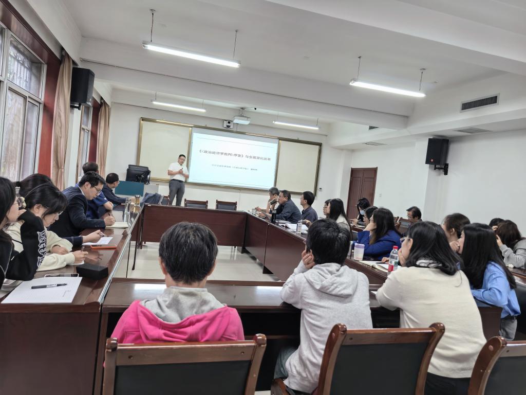 支部共建活动伊始,校(院)机关党委委员、决策咨询部主任滕海峰教授为经济学党支部和决策咨询党支部全体党员讲授了一堂深刻而生动的专题党课,主题为《〈政治经济学批判〉序言与全面深化改革》。他系统梳理《序言》的写作背景与目的,深入解读其中阐明的历史唯物主义基本原理,特别是社会基本矛盾运动规律这一核心要义。在阐释时代价值环节,他紧密结合全面深化改革实践,深刻论证了《序言》所揭示的社会发展规律对新时代进一步全面深化改革的指导意义,强调要善于运用马克思主义立场观点方法研究解决当前改革中的重大问题。所有与会党员,特别是年轻教师党员,在交流互动中普遍认为,党课内容翔实,逻辑严密,引导大家从马克思主义经典著作中汲取智慧,增强了将改革进行到底的历史自觉和战略定力。