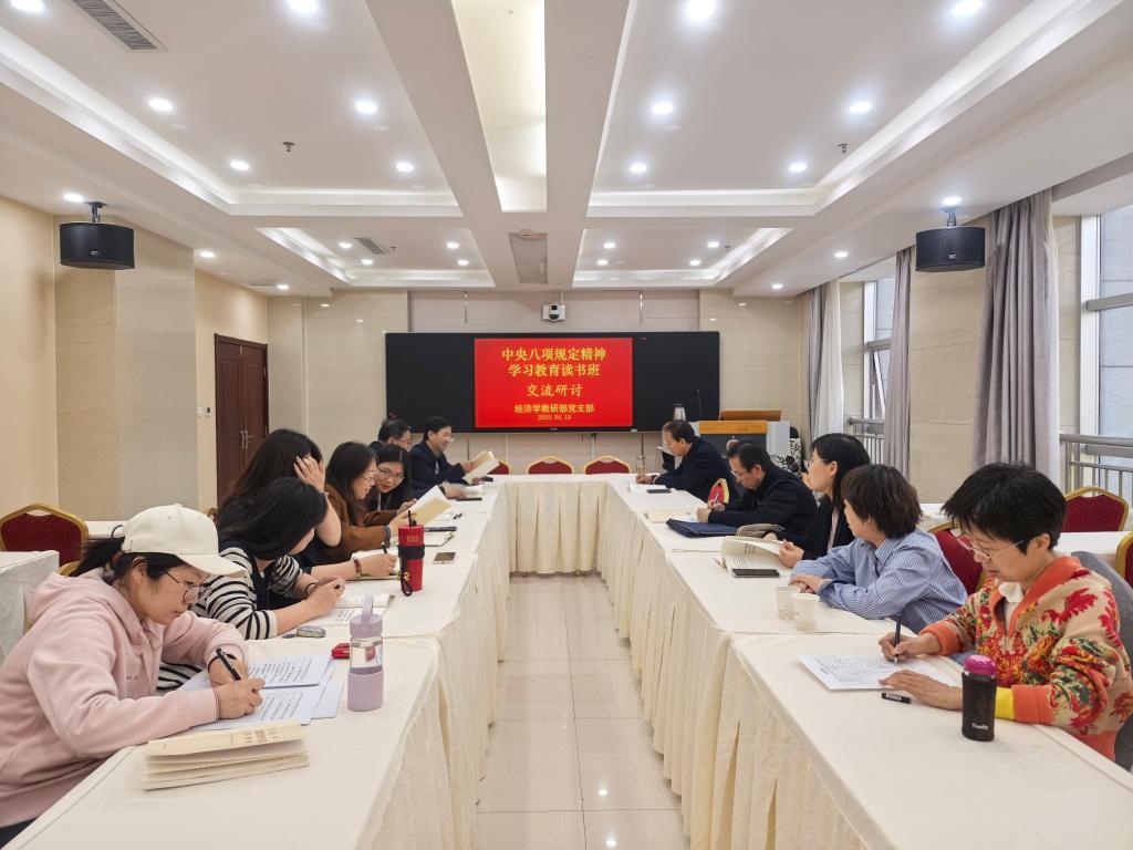 4月10日下午两点半,经济学教研部全体教师在2号楼4楼教室开会,开展党中央八项规定精神学习教育读书班学习交流活动,集中学习《习近平关于加强党的作风建设论述摘编》并开展交流研讨。