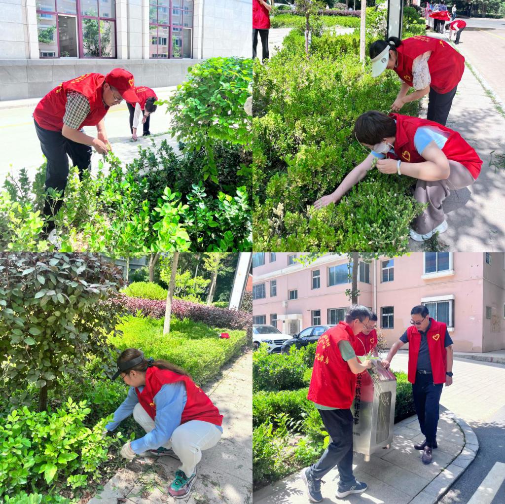 (通讯员 张铃玲)为迎接校(院)70周年校庆,营造良好干事创业氛围,经济学教研部党支部本着“校院是我家,爱护靠大家”的主人翁意识,进一步强化老师们的责任感和使命感,于6月25日上午在14号家属楼北侧经济学教研部绿化责任区域开展“清洁美丽校园,喜迎七秩华诞””卫生清洁志愿服务主题党日活动。