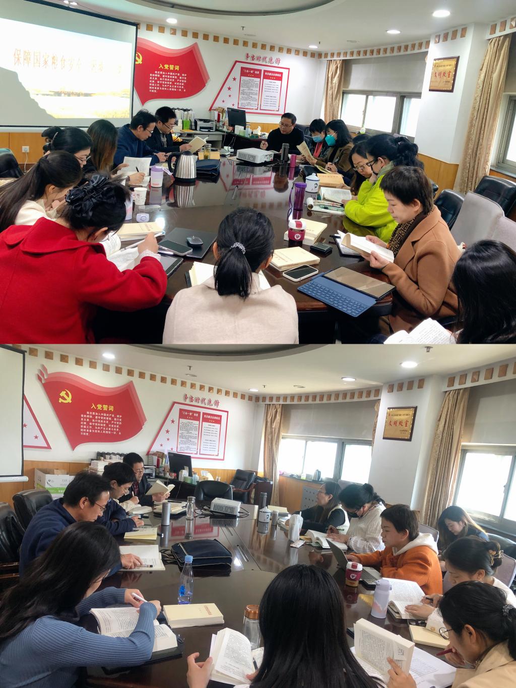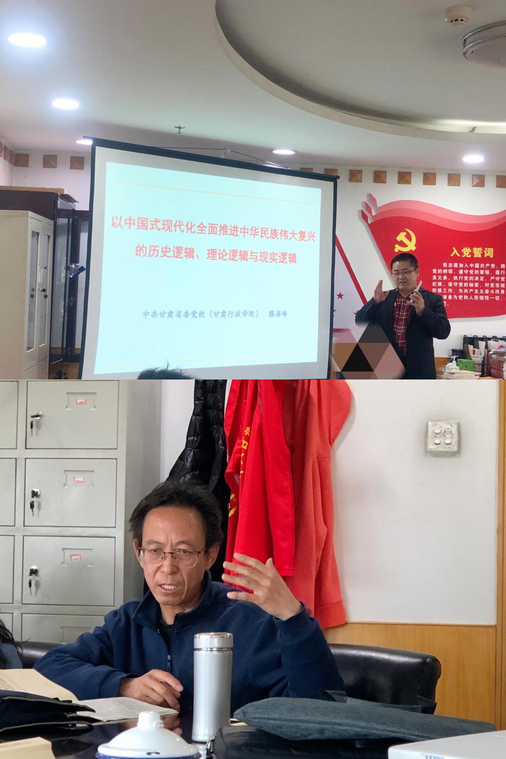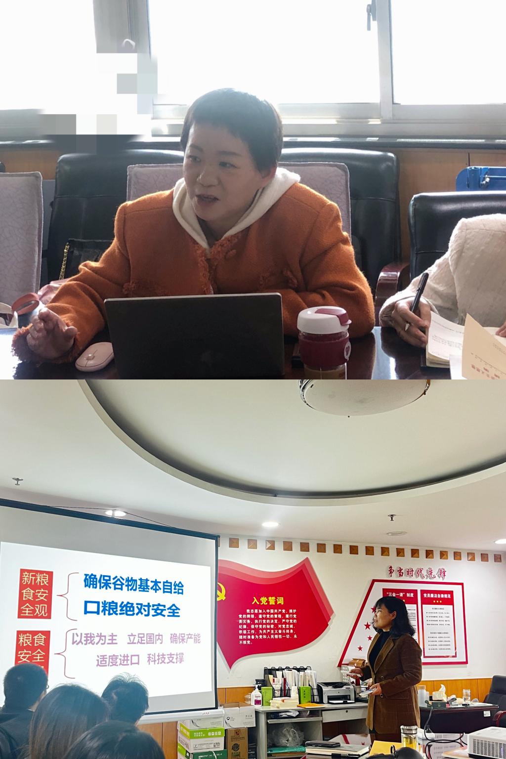 根据主题教育学习主旨要求,基于“育才献策”主责主业,经济学教研部群策群力反复修订和完善学习方案,并严格按照所制定的方案,开展了四次集中学习。第一次学习中,滕海峰领读学习《习近平新时代中国特色主义思想专题摘编》中的“以中国式现代化全面推进中华民族伟大复兴”相关内容,并重点讲授了以中国式现代化全面推进中华民族伟大复兴的历史逻辑、理论逻辑和现实逻辑;刘燕平从课程体系、小组讨论、理论支撑、讲授方式、经典导读、授课语言、科研支撑、学员关心的问题、课件制作等方面分享了今年3月份在中央党校(国家行政学院)参加培训的学习心得。第二次学习中,吴立贤领读学习《习近平新时代中国特色主义思想专题摘编》中的“构建高水平社会主义市场经济体制”相关内容;王永明结合自身相关研究,做了题为“农村产权制度改革与集体经济发展”的专题辅导;高霞从《习近平新时代中国特色主义思想专题摘编》中“人民就是江山,江山就是人民”相关内容,谈了自己的学习心得体会。第三次学习中,滕海峰领读学习《习近平新时代中国特色主义思想专题摘编》中的“统筹扩大内需和深化供给侧结构性改革”相关内容;赵慧做了题为“防范化解和金融风险”的专题辅导。第四次学习中,滕海峰领读学习《习近平新时代中国特色主义思想专题摘编》中的“全面推进乡村振兴,加快建设农业强国,推进农业农村现代化”和《习近平著作选读第一卷》中的“确保我国粮食安全”等重点内容;姚庆荣围绕“保障国家粮食安全:困境与出路”,做了专题辅导。