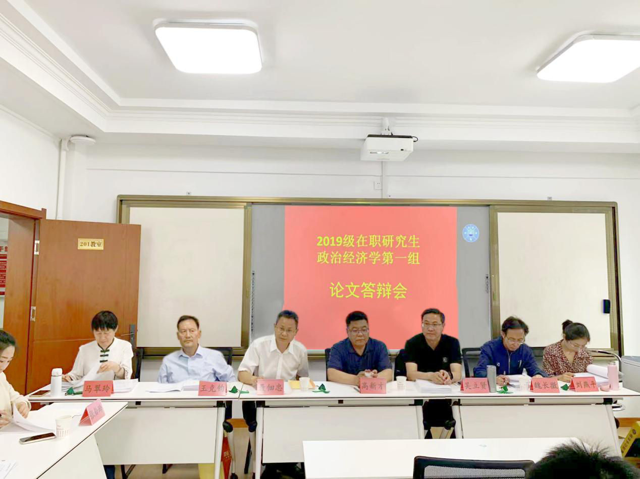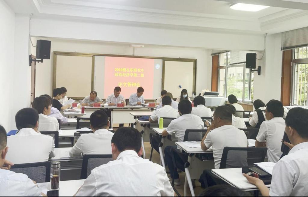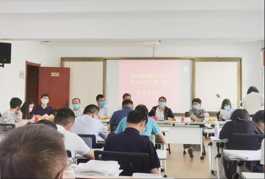 本次论文答辩采用循环交替的方式进行,学员按顺序依次进行答辩。答辩中,学员首先对自己的论文作简要陈述,陈述结束后对老师提出的问题进行认真回答。答辩评委以认真严谨的态度,对论文作精辟点评。经过两天紧张而精彩的答辩,2019级政治经济学专业三个班级及2017、2018级补答辩学员共115人全部顺利通过答辩。
