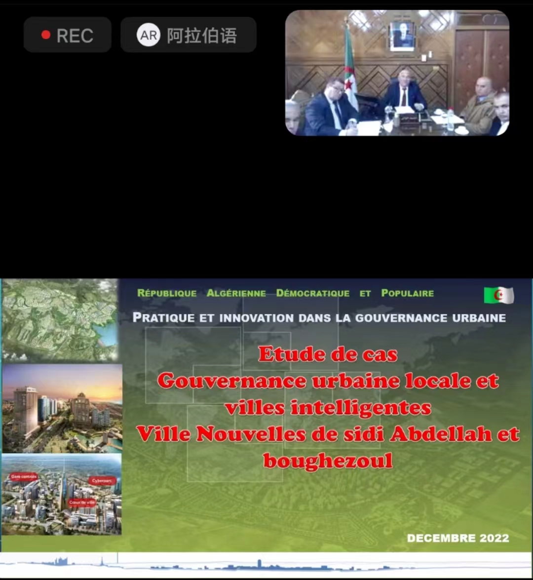 中央党校(国家行政学院)公共管理教研部张克副教授、赖先进副教授、上海市委党校(行政学院)汪仲启副教授、阿尔及利亚内政部国土规划与引资总司副司长索娃旦·默克赫塔丽女士、阿尔及利亚国家城市工程师学院院长拉赫代尔·哈米纳先生、阿尔及利亚杰勒法省省长阿里·阿马尔·本·萨阿德先生分别以“中国城市治理创新的实践路径:2012—2022”“中国新型城镇化进程中的特大镇治理体制创新”“上海政府治理数字化转型的创新行动” “阿尔及利亚城市治理中存在的问题”“城市治理在实现可持续发展中发挥的作用”“阿尔及利亚新型城市治理:以布格兹祖尔新城为例”为题,分别进行了主旨发言。
