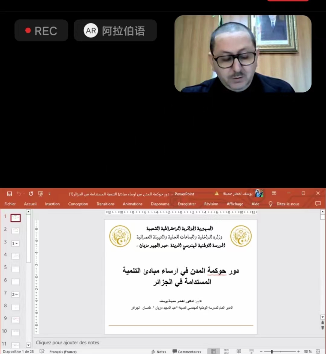 (通讯员 张霞)2022年12月29日下午,中共中央党校(国家行政学院)与阿尔及利亚内政、地方行政与土地整治部共同主办、上海市委党校(上海行政学院)协办的中阿“城市治理的实践与创新”线上学术研讨会成功召开。中央党校(国家行政学院)和部分地方党校(行政学院)有关学者、阿尔及利亚国家城市工程师学院以及16个省份省长共近200多人参会。我校(院)公共管理教研部、甘肃发展研究所等教研部门、交流合作处全体人员线上参加。会议使用中、法、阿三种语言同传。