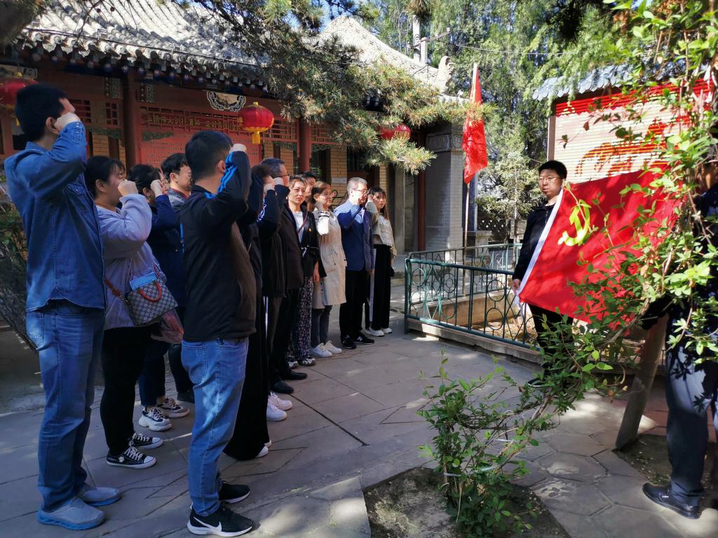 临洮,历史文化悠久,区位优势明显,资源禀赋较好,产业特色鲜明,是黄河古文化的重要发祥地之一,是省会兰州的南大门,被评为“省级卫生城”和“省级园林城市”。陇右革命纪念馆做为红色旅游资源和全省爱国主义教育基地,集中反映了陇右工委在甘肃境内的所有革命历史活动。纪念馆以陇右革命地下斗争、党的革命活动过程为依据,对地下革命斗争中的重要活动、参与的重大事件、接触的相关人物以及遗留的实物,以实物、图文、资料、雕塑等方式,真实、全面地反映了陇右地下党的革命斗争活动。在讲解员的带领和讲解下,党支部全体党员进行了认真的学习和参观并重温了入党誓词。大家深切地感悟到了在中国共产党的领导下,陇右人民开展了艰苦卓绝的地下斗争,直至革命胜利。历史告诉我们一个真理,只有中国共产党才能救中国,才能领导中国人民不断从胜利走向胜利。