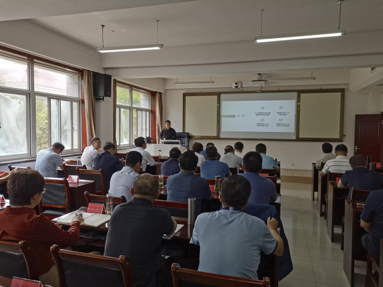(通讯员 宋磊)9月11日下午,中青年干部培训一班(副厅级班)学员微课开讲。甘肃农业大学副校长汪精海第一个走上讲台,以《人工智能背景下农业科技人才培养的思考 》为题,从人工智能在农业领域的应用及前景、智慧农业人才培养现状、智慧农业人才培养问题分析、智慧农业人才培养优化思路等四个方面,深入浅出地阐述了传统农业向现代农业跨越的大背景下,农业人工智能技术运用的广阔前景和当前制约智慧农业人才培养的现实问题和破解之道。同时,汪精海还分享了甘肃农业大学在优化学科布局、强化学科群建设、创新教学培养模式、推进产教融合、促进科技成果转化等方面的有益探索。如何以高质量人才培养深切回答时代之问,如何以高科技给现代农业赋能、保障国家粮食安全等课题,引发同学们的深入思考,大家聚精会神、频频点头。讲述结束后,同学们报以热烈的掌声。