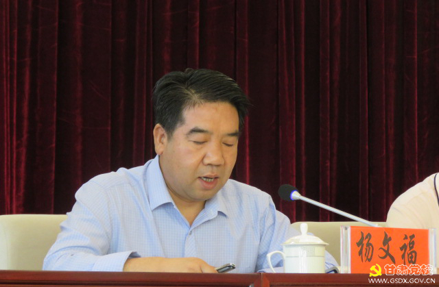 副校长杨文福强调,当前,脱贫攻坚已经进入最后冲刺阶段,攻克深度贫困堡垒,成为脱贫攻坚的重中之重,责任更加重大。进入新时代,我们要认真学习贯彻习近平总书记扶贫开发重要战略思想和对甘肃提出“八个着力”重要指示精神,全力以赴打赢打好“两州一县”脱贫攻坚战。一要强化责任担当,弘扬艰苦奋斗精神;二要坚持靶向精准,落实精准扶贫精准脱贫要求;三要强化精神扶贫,增强内生脱贫动力;四要创新体制机制,提高脱贫攻坚成效;五要加大组织领导,强化脱贫攻坚保障;六要加强监督检查,建立健全责任倒逼机制。