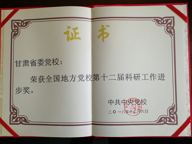 会议宣布中共中央党校(国家行政学院)对全国地方党校(行政学院)第十二届优秀科研成果奖等获奖单位和个人进行表彰的决定。14家省级党校、8家副省级城市党校分别获优秀科研工作组织奖、科研工作进步奖、课题项目中标奖,150项科研成果获优秀科研成果奖,41位党校系统工作者获优秀科研管理工作者奖。我校(院)获全国地方党校第十二届科研工作进步奖,全国有3家省级党校获此奖项;郭爱玲、刘文琴的著作《领导干部心理健康与调适》获优秀科研成果一等奖,马应超的著作《中国民族财政治理研究》、敏生兰的研究报告《民族地区党建工作的现实困境与路径选择研究》获优秀科研成果二等奖,魏奋子、彭宝珍的著作《河西走廊绿洲农业能值及其发展方式转变》获优秀科研成果三等奖,魏立平的研究报告《什么是文博会、怎样办好文博会》获优秀决策咨询三等奖;薛玮获优秀科研管理工作者奖。
