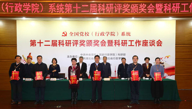 12月23日,由中央党校(国家行政学院)科研部、湖北省委党校(湖北省行政学院)主办的全国党校(行政学院)系统第十二届科研评奖颁奖会暨科研工作座谈会在湖北省委党校(湖北省行政学院)召开。中央党校(国家行政学院)副校(院)长谢春涛出席会议并作主题报告,湖北省委常委、组织部部长、省委党校校长王瑞连致辞。湖北省委党校(湖北省行政学院)常务副校(院)长陶良虎主持开幕式,中央党校(国家行政学院)科研部副主任刘宝东作大会总结。我校副校(院)长孙秉文出席会议。
