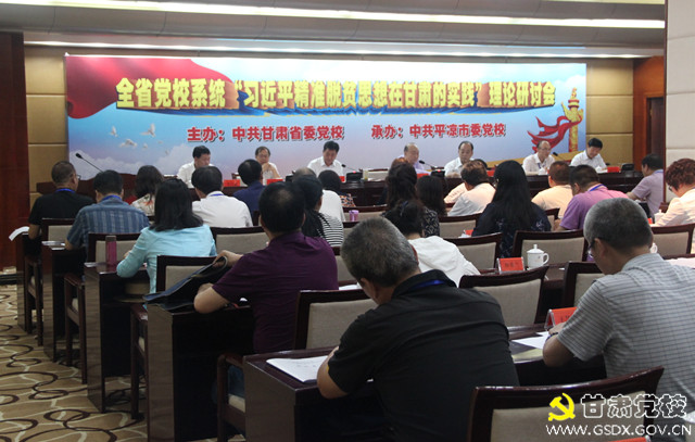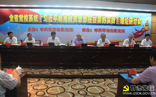 7月15日,全省党校系统“习近平精准脱贫思想在甘肃的实践”理论研讨会暨甘肃省党校系统中国特色社会主义理论体系研究中心(智库联盟)会议在平凉举行。中共甘肃省委党校常务副校长冯湖教授出席并作了主题报告,中共平凉市委副书记、市政协主席、市委党校校长王大睿致词,会议开幕式由省委党校副校长孙秉文主持。来自全省市(州)委党校的常务副校长、分管科研的副校长(或行政学院副院长)、科研管理人员、入选论文作者以及平凉市委党校和省委党校科研处、智库工作站、工作处、计财处的部分工作人员共80多人参加会议。孙秉文宣读了《关于表彰全省党校系统2016-2017年度科研工作先进单位和优秀科研成果奖的决定》,对全省党校系统2016-2017年度科研工作先进单位、优秀科研成果和理论研讨会优秀论文进行了表彰。