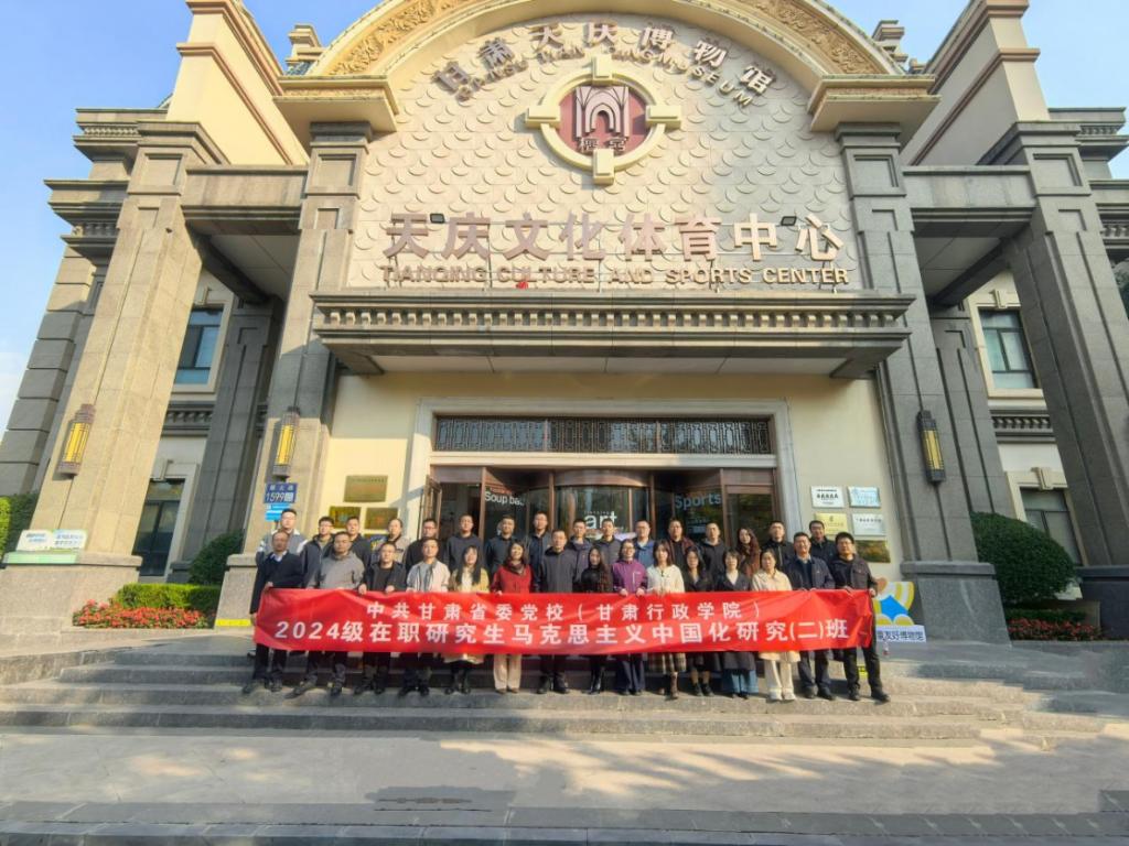 (通讯员 李娜)为深化马克思主义中国化研究的实践认知,筑牢信仰之基,10月25日下午,2024级马克思主义中国化研究(二)班在马克思主义中国化研究专业导师组组长、马克思主义学院院长李振佑教授和班主任史如霞副教授的带领下前往甘肃省天庆博物馆开展党性教育活动。