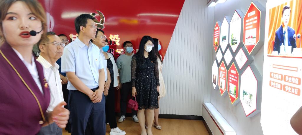 揭牌仪式后,全体党员首先在宣誓广场重温了入党誓词。然后,大家在讲解员的带领下,依次参观了党建园的前言展厅、初心走廊、党建科普区、业绩展示区、企业文化墙、党员活动馆、廉洁教育林等板块。接着,大家体验了“初心园”先进的云上党史馆,分设了“中国精神”“AR智慧党建沙盘”“VR体验”三个展览部分。中国精神展区图文并茂、形象具体、内容丰富,生动展现了中国力量;AR智慧党建沙盘区涵盖了献礼建党100周年系列5大场馆、新时代思想系列10大场馆、新中国史系列7大展馆、全国红色教育基地10大展馆等;VR党建体验区,凭借虚拟现实技术,在VR设备中设计了互动功能,使体验者全方位沉浸于血战湘江、爬雪山、过草地、飞夺泸定桥等虚拟场景中,让人穿越时空、身临其境。最后,大家参观了党员政治生活馆,馆内陈列了党建图文展板、书籍报刊等,是规范党员组织生活、丰富党员文化生活的重要场所。