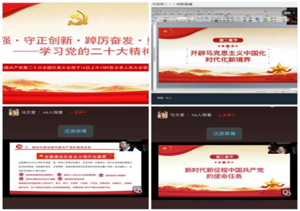 活动主要包括两项议程:一是支部学习,二是教研部活动。首先由马文奎副书记带领大家在线解读二十大报告精神,教研部全体人员参加集体研讨学习。学习重点围绕过去五年的工作和新时代十年的伟大变革、开辟马克思主义中国化时代化新境界、新时代新征程中国共产党的使命任务等二十大报告重点内容,教研部全体人员对中国式现代化的特征、本质要求,十年来党和国家事业取得的历史性成就、历史性变革进行了深入探讨。