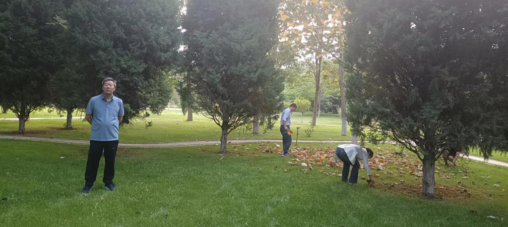 支部全体党员用双手清除杂草,大家相互合作,齐心协力,经过一个多小时的劳动,教学楼南坡民族宗教教研部党支部负责区域内的杂草和树叶被清理得一干二净,进一步巩固了文明校园成果,营造了整洁、优美、和谐的校园环境。