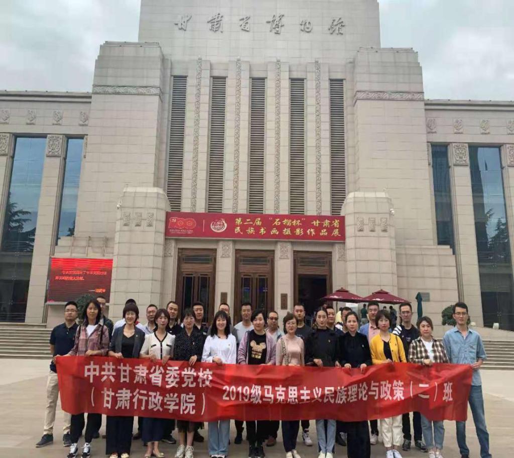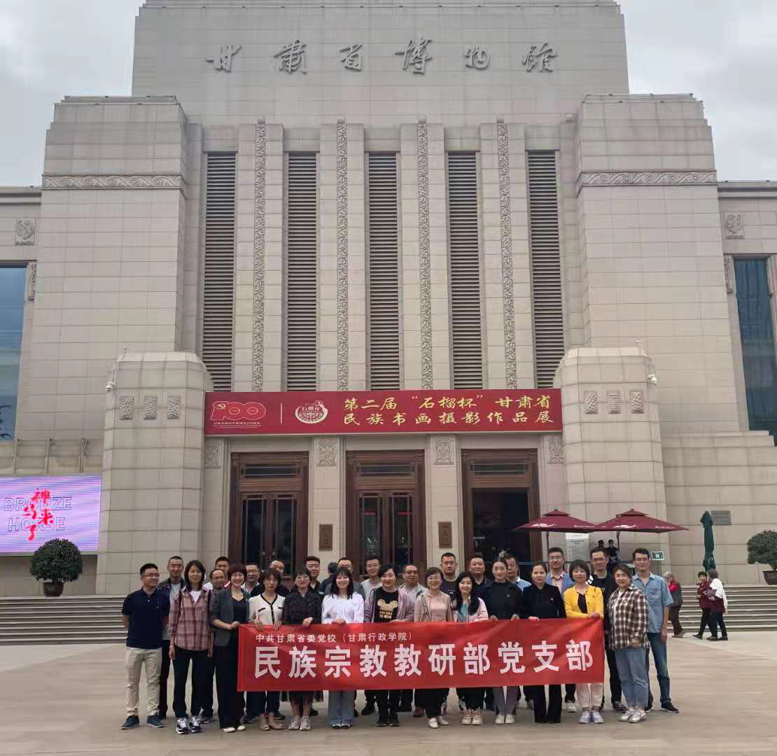 为深入学习贯彻落实习近平总书记关于民族工作,特别是铸牢中华民族共同体意识的重要论述,全面深入持久开展民族团结进步创建工作,深化民族团结进步教育进校(院),6月2日上午,民族宗教教研部党支部组织马克思主义民族理论与政策专业2019级(2)班全体研究生在甘肃省博物馆参观第二届“石榴杯”甘肃省民族书画摄影作品展,民族宗教教研部党支部书记周静茹和班主任马桔红老师等参加了活动。