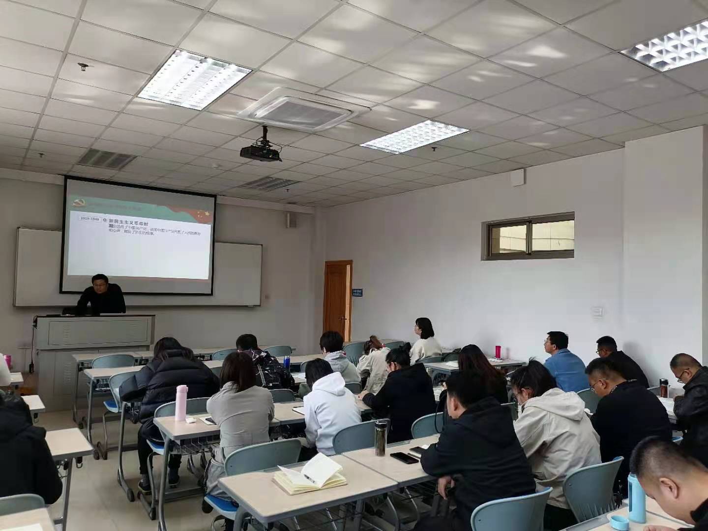 2021年3月9日上午,民族宗教教研部党支部在教学楼207教室组织开展第一季度“专题党课”暨主题党日活动。本次活动结合校(院)在职研究生党性教育,由范景鹏副教授讲授“树立正确党史观”,党支部全体党员同志参加。