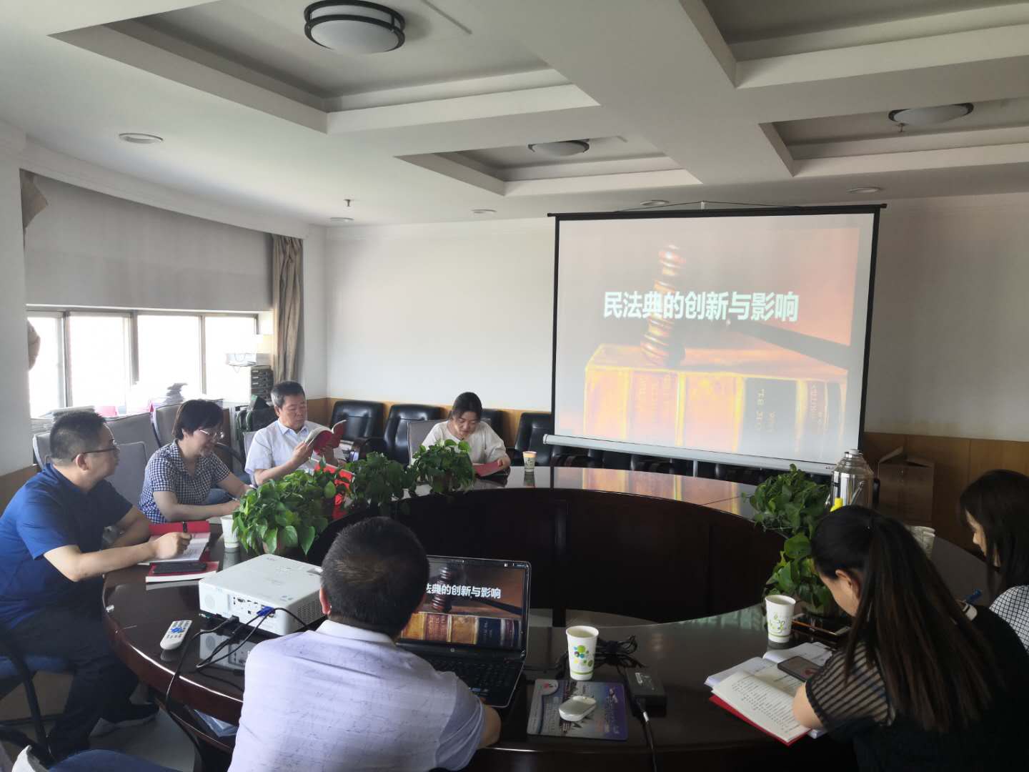 首先,开展了支部主题党日活动暨《中华人民共和国民法典》学习。邀请政治和法律教研部李钢副教授做了《民法典》解读。李钢副教授强调,《民法典》是新中国第一部以“法典”命名的法律,被称为“社会生活的百科全书”,在法律体系中居于基础性地位,是民事权利的宣言书和保障书,并从“体系创新、理论创新、立法创新、中国模式创新”四个方面详细讲解了《民法典》的创新与影响,然后就《民法典》实施与各位老师进行了深入讨论交流,大家各抒己见、讨论热烈,获得了良好的学习效果。