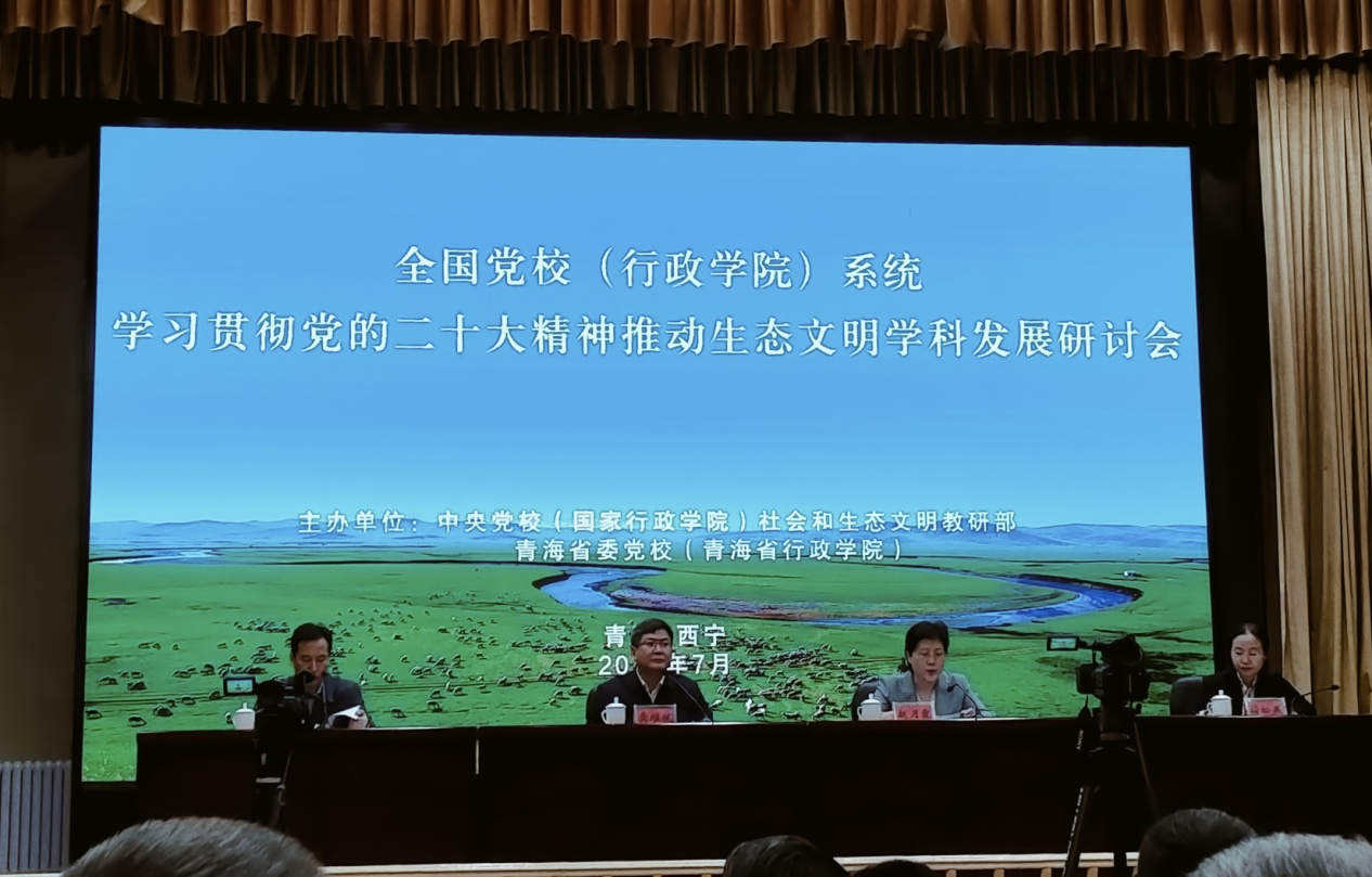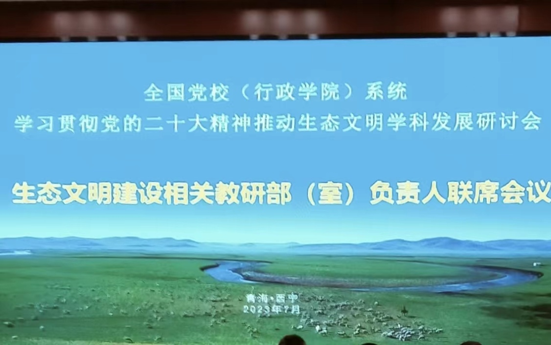 为贯彻落实党的二十大精神,深入践行习近平生态文明思想,进一步加强全国党校(行政学院)系统生态文明学科的交流与合作,在全党深入开展学习贯彻习近平新时代中国特色社会主义思想主题教育的重要节点,在学习领会全国生态环境保护大会精神的重要时刻,2023年7月20日至21日,由中央党校(国家行政学院)社会和生态文明教研部和青海省委党校(行政学院)共同举办的全国党校(行政学院)系统学习贯彻党的二十大精神推动生态文明学科发展研讨会在西宁举行。 中央党校(行政学院)副校院长龚维斌等领导参加了这次会议。这次会议是新冠疫情结束后的首次线下会议,会期时间一天半。参会者包括中央党校副校长龚维斌教授、全国党校(行政学院)系统相关部门教师代表和北京大学习近平生态文明思想研究中心主任郇庆治教授等高校知名专家。我校社会和生态文明教研部王亚强教授和甘肃发展研究院温煜华教授应邀参加了此次会议,并因事先提交的发言要点被办会方选中,两位教师都在论坛上作了重点发言。