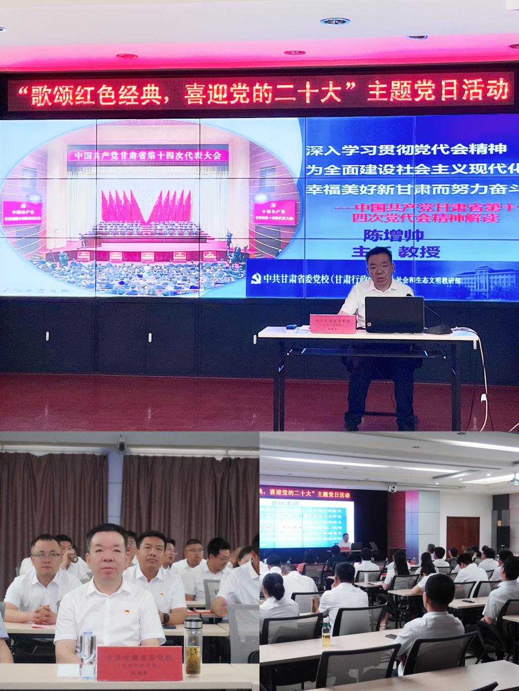 宣誓结束后,支部书记陈增帅作了题为《深入学习贯彻党代会精神,为全面建设社会主义现代化幸福美好新甘肃努力奋斗》专题辅导,传达了省第十四次党代会精神。2021级在职研究生(二)班全体同学开展了知识竞赛、文艺表演等丰富多样的活动,气氛热烈而活跃。